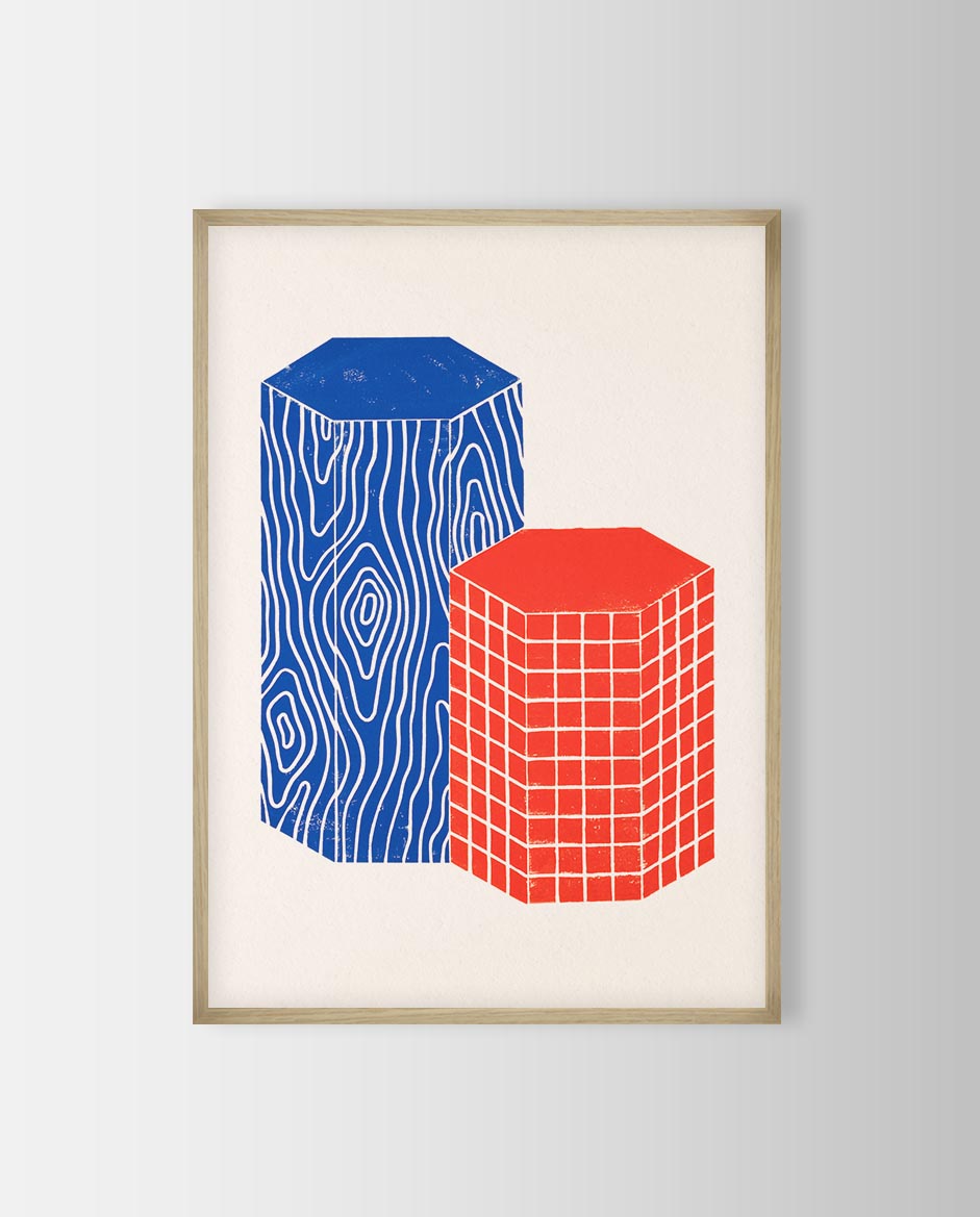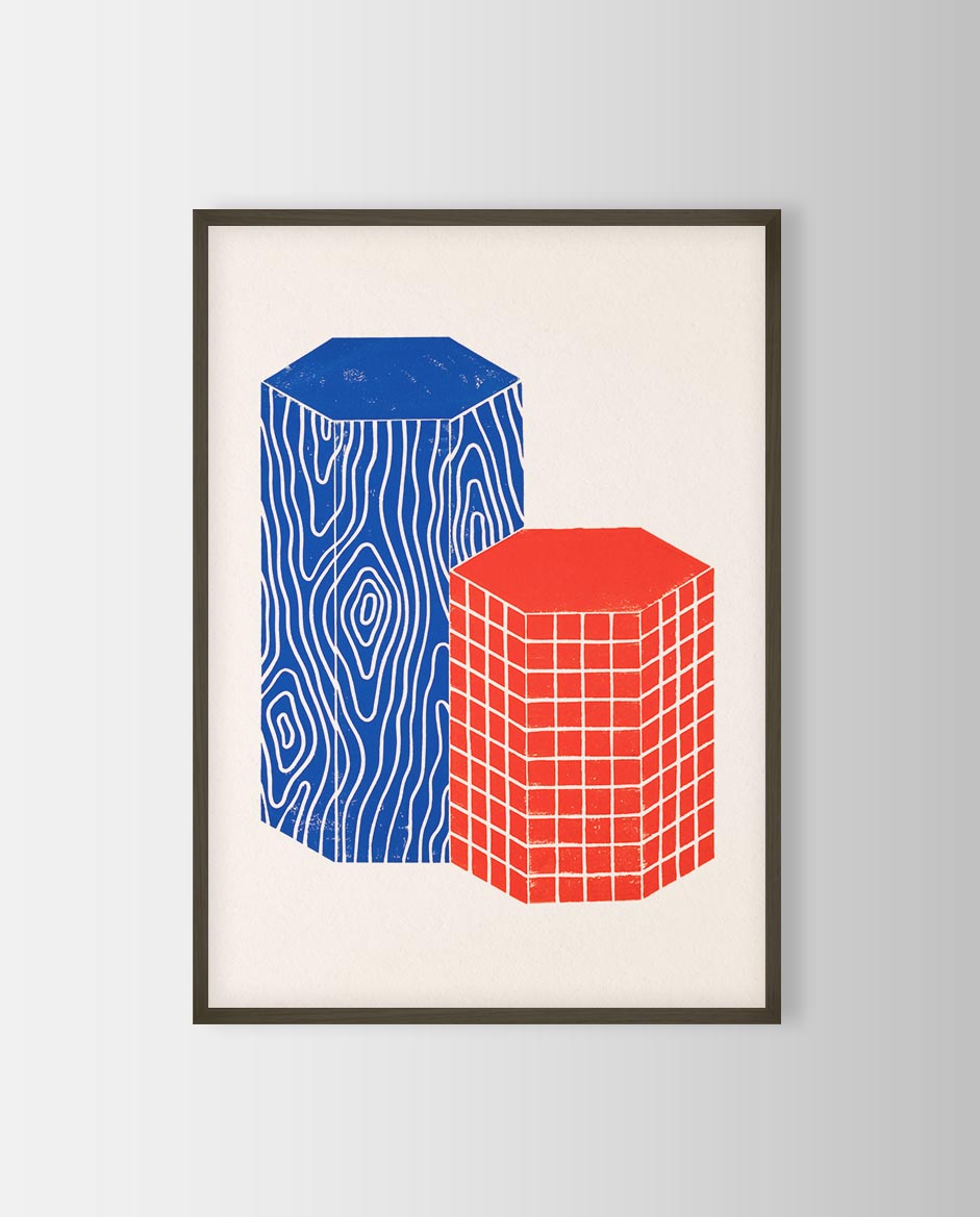The frame should not only match your print but also your wall and the rest of your interior. Our wooden frames come in oak and aluminum frames in black.