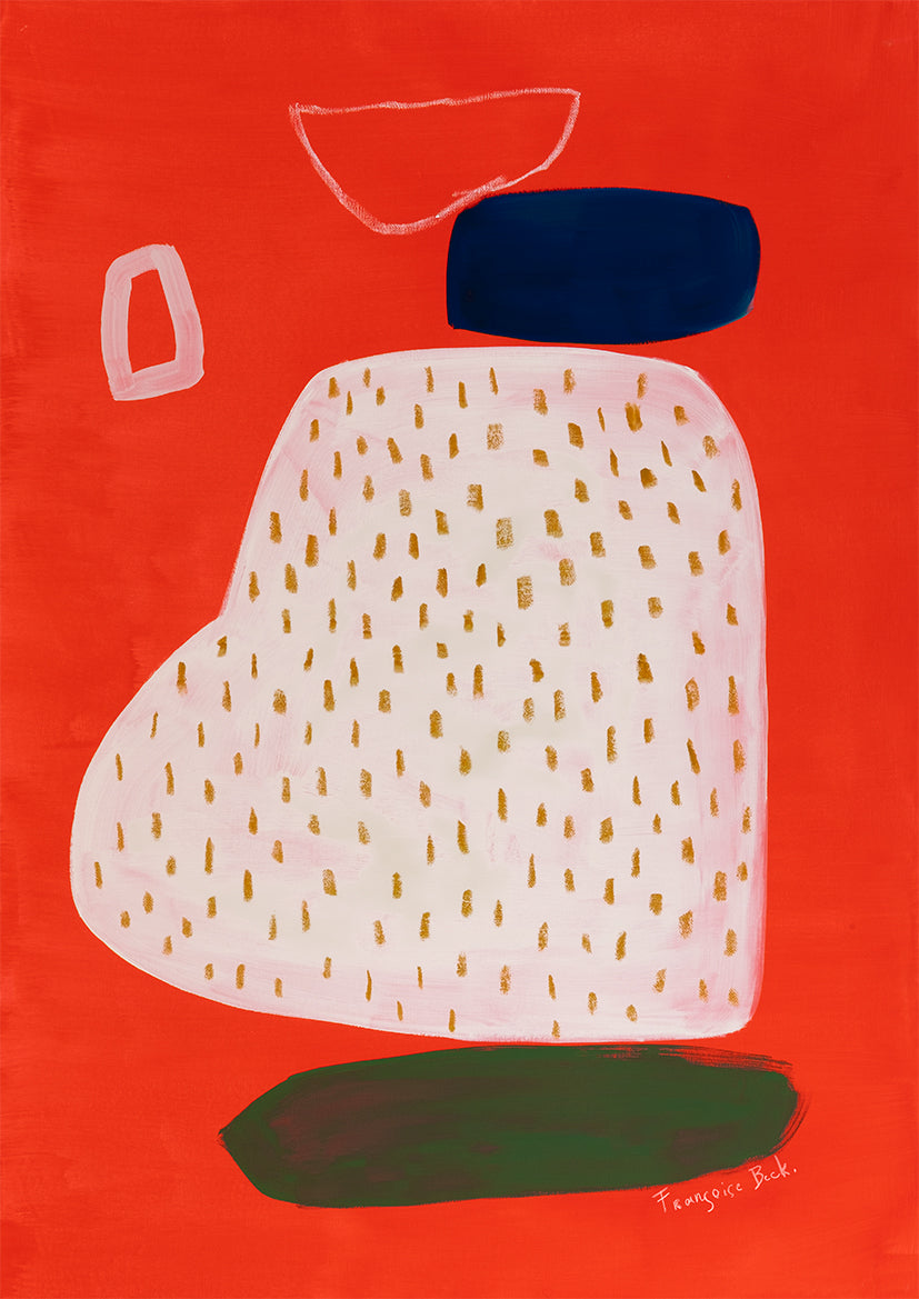 Françoise Beck (1984) lives and works in Antwerp. She illustrates picture books in cooperation with publishers such as Querido. In her free work she can remain true to her own form of expression. In paintings and drawings she searches for a certain simplicity and peace in which all the superfluous falls away. Françoise plays with color, composition and form and brings balance to her images. She likes to leave a lot of space for her own imagination and interpretation. Françoise has a passion for interiors and regularly works with architects in the form of Art Integration projects. She likes to share her creativity with others and gives workshops for adults and she teaches young people graphic design at Sint-Jozef OV4. For BuroMuro she made a collection called PLAY series.