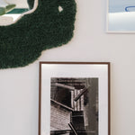The frame should not only match your print but also your wall and the rest of your interior. Our wooden frames come in oak and aluminum frames in black.