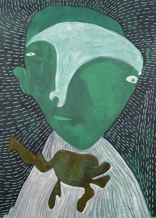 Man met groen hoofd