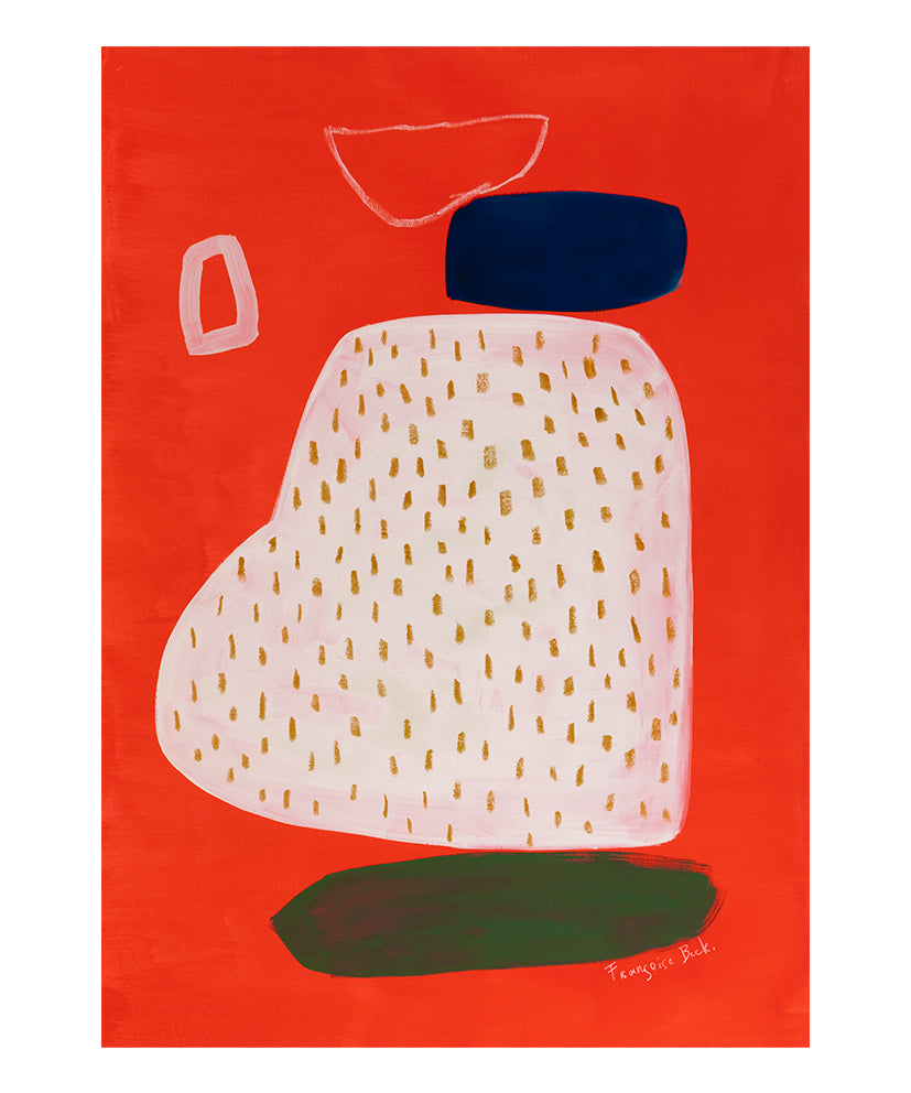 Françoise Beck (1984) lives and works in Antwerp. She illustrates picture books in cooperation with publishers such as Querido. In her free work she can remain true to her own form of expression. In paintings and drawings she searches for a certain simplicity and peace in which all the superfluous falls away. Françoise plays with color, composition and form and brings balance to her images. She likes to leave a lot of space for her own imagination and interpretation. Françoise has a passion for interiors and regularly works with architects in the form of Art Integration projects.She likes to share her creativity with others and gives workshops for adults and she teaches young people graphic design at Sint-Jozef OV4. For BuroMuro she made a collection called PLAY series.
