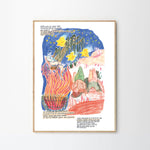 The illustration "Together We Shaped 'Summer'" by Julie Paeshuys (aka Blikvoer) is a colorful depiction of the nostalgic feeling of summers from your childhood. Julie usually starts with poems she writes and then creates an image to accompany them. With this poem and its image, she aims to reflect the feeling of sultry, carefree summer evenings by the fire pit and the distant, unknown future that you didn’t worry about back then.